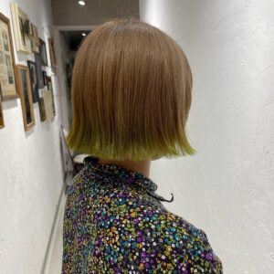 裾にライムグリーンのカラー:姫路美容室キッテ